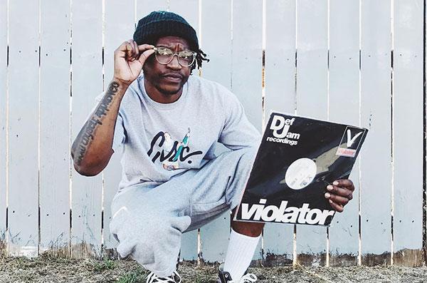 John Givez posted up and looking proper in the Marin and a whole collection of classics: Converse, sweats, and Violator on vinyl.