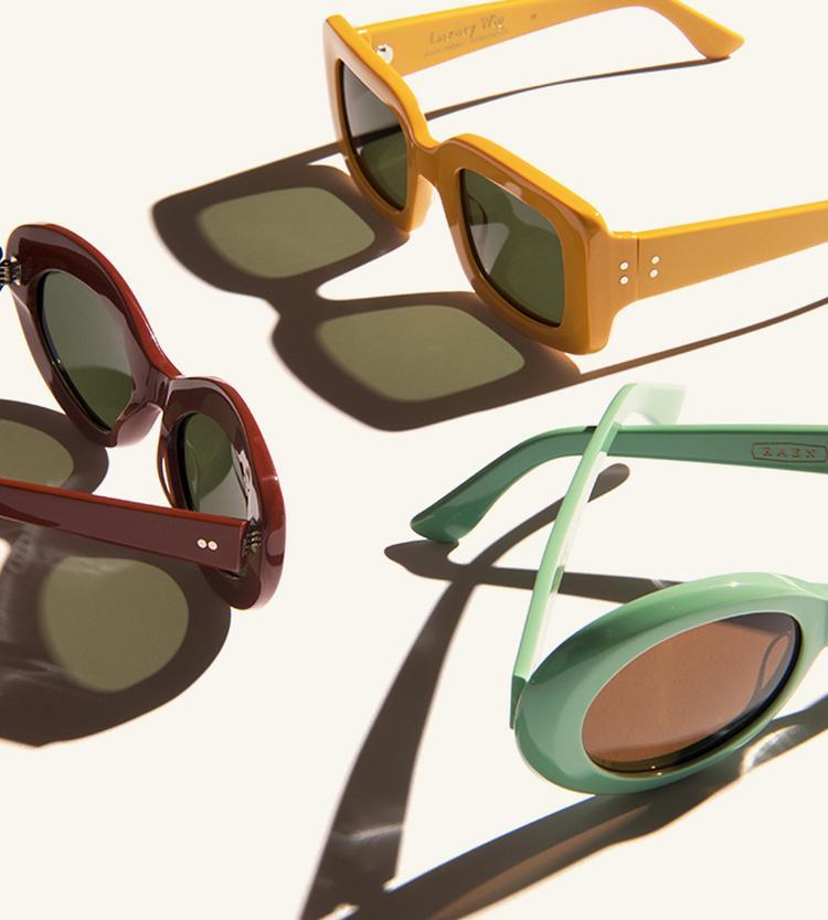 Luxury Wig is a collaboration with Alex Knost. The Luxury Wig collection taps the Figurative, Ashtray, and Flatscreen silhouettes and updates them with new pop color acetates. While also maintaining some of our favorite acetate colors from the seasons past, Luxury Wig gets a fresh new packaging update.