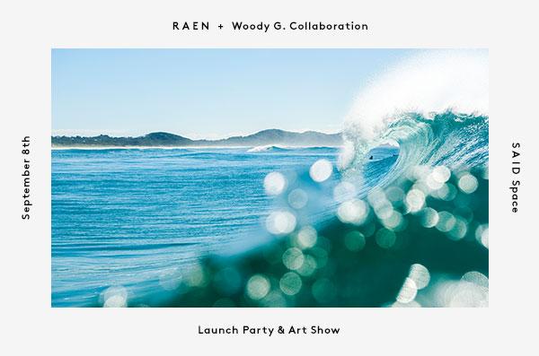 You're invited to the Woody G. Art Show to celebrate the launch of the limited RAEN + Woody G. Collaboration, featuring the Remmy 49 in a mellow crystalline green frame with polarized smoke grey lenses.