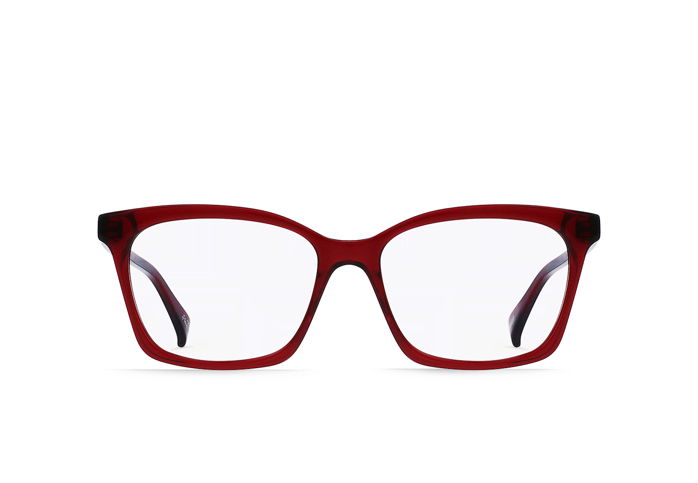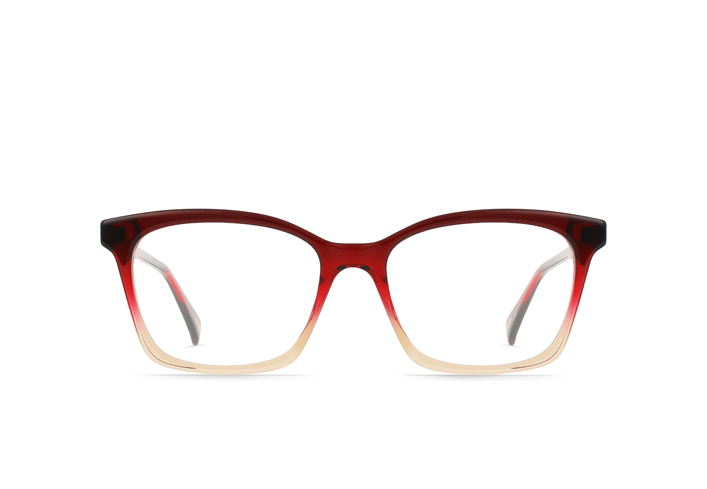 Saffron is a gradient red frame handmade from Mazzucchelli M49 Bio Acetate.