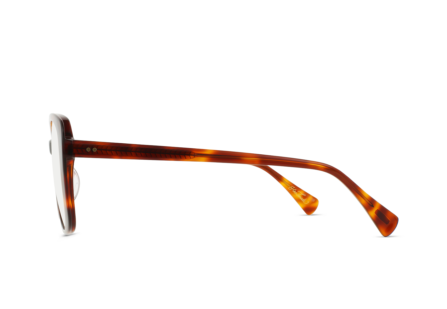 Shara is a feminine, full-coverage frame that channels ‘70s ease through a relaxed, sculptural shape. The hybrid silhouette blends soft curves with bold presence, while CNC detailing on the interior creates visual depth and a unique tactile experience. The transparency of its rich acetate material highlights the layered construction, making each angle feel intentional. Finished with lightweight temples and drilled rivet hinges, Shara strikes a balance between vintage inspiration and modern refinement.